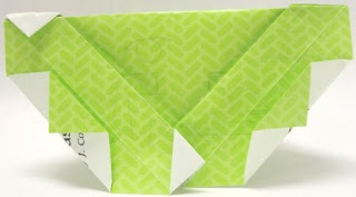 I think you have to visualize here....so think teeth on the bottom....a nose in the middle....and that's one eye on the left....on this side the teeth are pointing up so it is happy....I just now figured this out from seeing the picture. Maybe the other side the teeth are pointing down and so he is mad?
